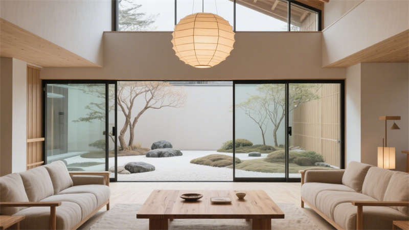 本設(shè)計(jì)以自然與現(xiàn)代的融合為核心,延續(xù)了原木、玻璃與清水混凝土的材質(zhì)語言,將合肥地域的溫潤氣質(zhì)與侘寂美學(xué)相呼應(yīng),打造出兼具舒適感與藝術(shù)感的居住場景。公共區(qū)域中,淺橡木色的柜體與天花線條連貫延伸,搭配通透的玻璃隔斷,讓光線自由穿梭,模糊室內(nèi)外的邊界;清水混凝土墻面保留了原始肌理,與苔蘚綠的軟裝陳設(shè)形成柔和對比,傳遞出質(zhì)樸而寧靜的氛圍。?