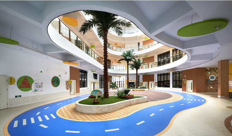 今天跟大家分享的是一所樓面積為9000多平方的幼兒園,充足的建筑環(huán)境為兒童提供豐富的活動空間.本套設計,設計師從"生活化教育"理念出發(fā),在滿足班級活動室空間需求的前提下,充分利用建筑資源條件,將空間規(guī)劃重組.配套設計有仿成人社會的小小商業(yè)城、建筑中庭的中央公園、環(huán)繞公園的街道馬路、多功能美食坊、復式結構的圖書館、美術專項室、科學發(fā)現(xiàn)館、淘氣堡游樂城以及音體活動室等空間.構建小小社會,解放孩子的頭腦、雙手、腳、空間、時間,使他們充分得到自由的生活,從自由的生活中得到真正的教育.
