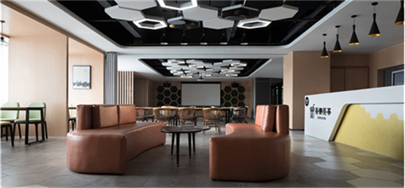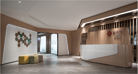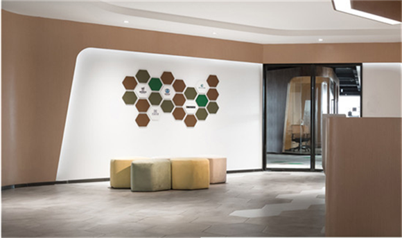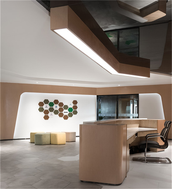 通過空間調度,模糊各個工作區(qū)域間的界限,打造既開放、又不乏私密性的辦公區(qū)。除此之外,曲線與直線在空間共存,線條的形式感使辦公室充滿現代化與創(chuàng)意十足,極大的在視覺上滿足了客戶的營銷訴求,構建來人第一感性認知。