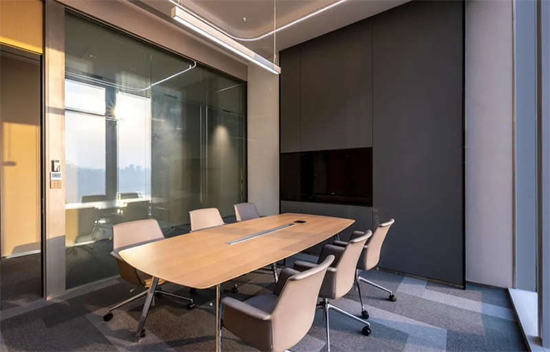 此辦公場所融合行業(yè)范式、藝術(shù)、辦公、會(huì)客和休閑功能,豐富的城市景觀與奢華的家具用材將空間美學(xué)統(tǒng)一起來,落地窗獲得更多明亮場域,空間通透舒朗,客戶進(jìn)入空間能感受到簡潔明亮的氛圍。