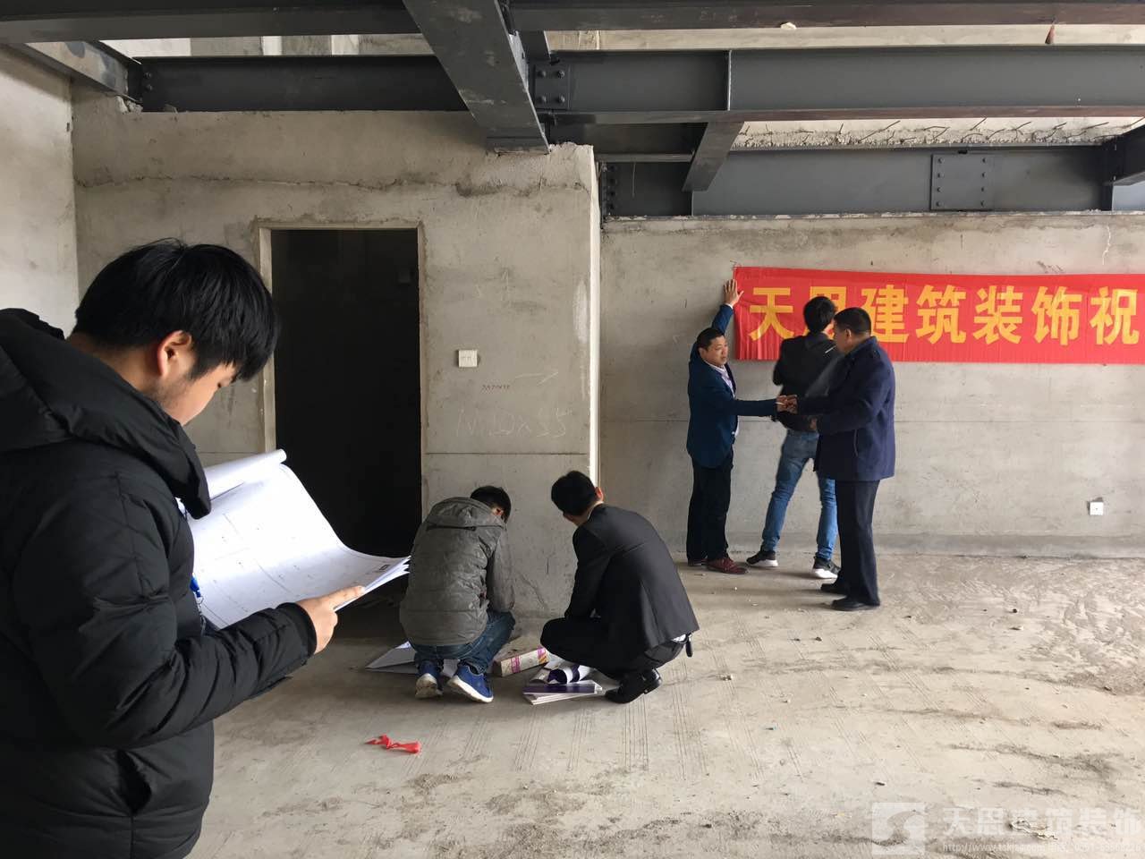 合肥黃金廣場辦公室裝修項(xiàng)目由我公司承接前期設(shè)計(jì)任務(wù)與后期工程施工任務(wù),從一開始的設(shè)計(jì)方案撰寫、到平面布局的構(gòu)思與繪制、再到與甲方的多次溝通與交流、設(shè)計(jì)效果的表現(xiàn)、施工圖的繪制等等工作。終于到今天,該項(xiàng)目于3月6號正式開工。為此我公司該項(xiàng)目執(zhí)行設(shè)計(jì)師郭工、胡工、工程負(fù)責(zé)人劉工等都趕到現(xiàn)場,為開工做著準(zhǔn)備工作。我公司已經(jīng)安排工人進(jìn)場,現(xiàn)場施工條幅已經(jīng)拉起。接下來的施工正按計(jì)劃有步驟地進(jìn)行。
