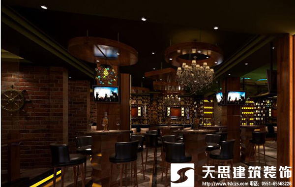 合肥天思裝飾工程有限公司是一家專業(yè)從事酒吧裝修、休閑會所裝修、網吧裝修等各種場所裝修設計施工。我們致力于為每個客戶打造完美空間。酒吧越來越受到人們的重視。越來越多地出現中國都市的一個個角落。酒吧品種多多,酒吧的情調迷人,且不乏激情,它成為青年人的天下,更是黑夜不歸的一種默許。酒吧的興起與紅火已經成為了當今時代不可否認的事實。因此對于酒吧裝修的品味也在不斷提高著。今天就帶大家看看幾個酒吧裝修的效果圖。