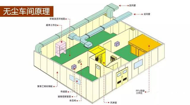 達(dá)到要求的這樣一個穩(wěn)定生產(chǎn)環(huán)境即稱為無塵車間,也叫潔凈廠房、潔凈室(Clean Room)、無塵室。無論外部條件怎么變化,其室內(nèi)均能維持符合原先設(shè)定要求的潔凈度、溫濕度及壓力等性能。