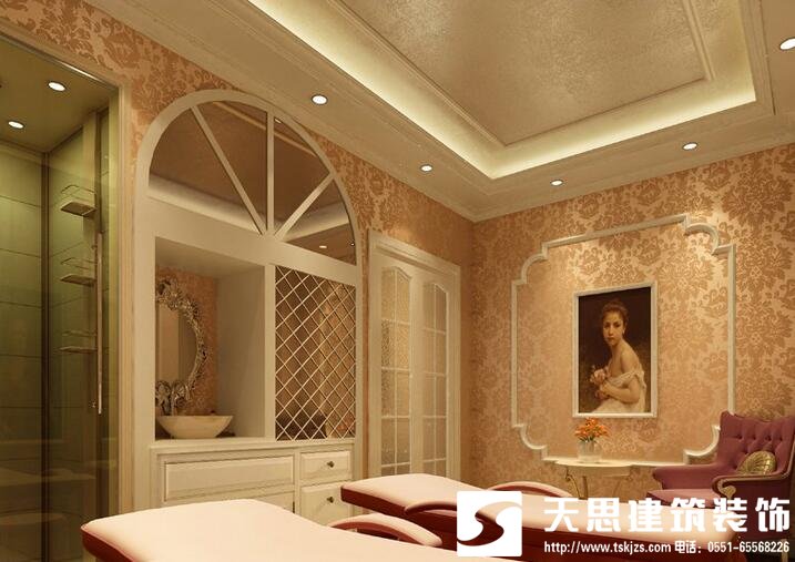 顧客進(jìn)入護(hù)理區(qū),則屬于恬靜,安寧松弛的“陰”區(qū)了,美容床要舒適安寧,光線要柔和,配合舒緩的SAP音樂,以及美容師輕聲舒緩的語調(diào),輕柔的動(dòng)作,都有助于顧客在體態(tài)放松之中接受美容師,工作護(hù)理區(qū)設(shè)計(jì)要以柔和的光線,色調(diào)及圓形平撫心情的圖案為主。