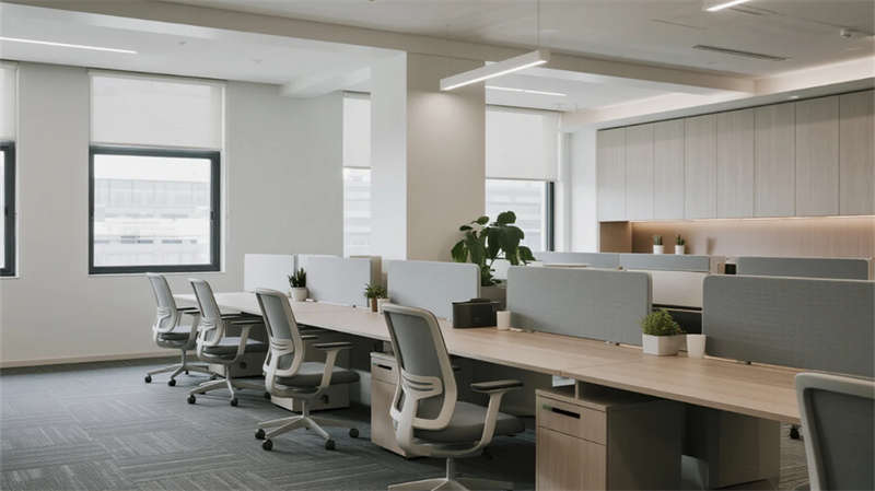 在現(xiàn)代簡約風(fēng)格的引領(lǐng)下,該辦公空間以開放性和人文關(guān)懷為核心,打造了一個流暢而高效的日常工作環(huán)境。整體設(shè)計強調(diào)視覺統(tǒng)一性,通過淺色調(diào)的墻面與地板、簡潔的家具線條以及自然元素的融入,營造出寧靜而專業(yè)的氛圍。功能區(qū)之間無縫銜接,例如協(xié)作區(qū)與開放式辦公區(qū)通過綠植和智能燈光形成自然過渡,確保團隊互動的同時兼顧個人專注需求。休息茶水區(qū)則以溫馨的布局促進員工放松,而創(chuàng)意工坊區(qū)則激發(fā)創(chuàng)新思維,多功能活動區(qū)則支持多樣化的工作模式。