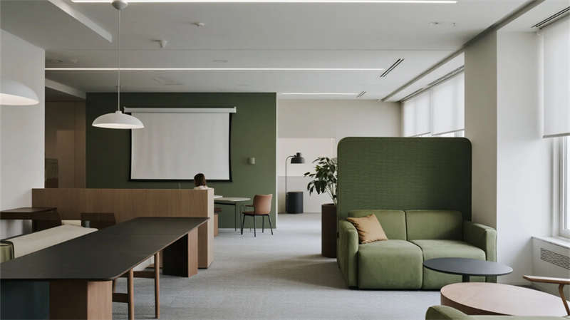 設(shè)計中注重舒適與可持續(xù)性,大量運用自然光和綠植,不僅提升空間活力,還呼應(yīng)了生態(tài)友好的理念。智能照明系統(tǒng)根據(jù)不同時段調(diào)節(jié)亮度,強化了現(xiàn)代感。整體空間布局靈活,避免了僵化分區(qū),使辦公體驗更具人性化。該方案旨在為使用者提供一個激發(fā)創(chuàng)造力、促進協(xié)作的理想場所,每一處細(xì)節(jié)都體現(xiàn)了簡約而不簡單的美學(xué)追求,讓日常工作充滿活力與歸屬感。