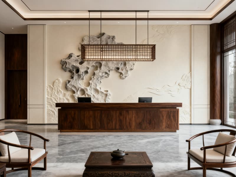 細(xì)節(jié)設(shè)計(jì)中,將宿州文化元素巧妙融入,如靈璧石紋理背景墻、仿漢闕入口景墻、非遺手工藝品陳列等,增強(qiáng)空間的地域認(rèn)同感;同時(shí)注重人性化與實(shí)用性,采用人體工學(xué)家具、智能感應(yīng)設(shè)備、隱形收納系統(tǒng)等,提升辦公舒適度與空間利用率。整體設(shè)計(jì)既滿足現(xiàn)代商務(wù)辦公的高效需求,又通過中式美學(xué)與地域文化的融合,為企業(yè)打造獨(dú)具格調(diào)的辦公環(huán)境。