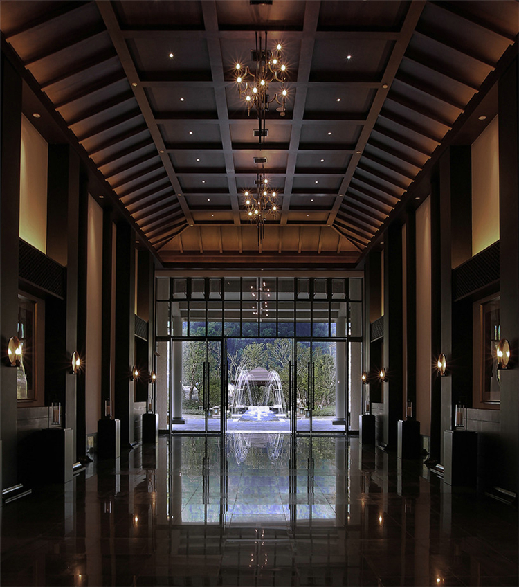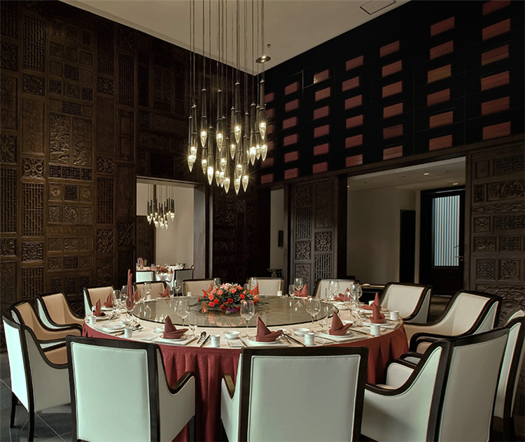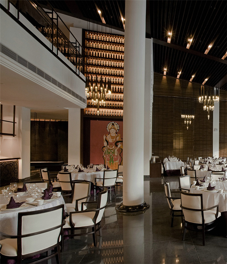 穿過悠長(zhǎng)的走道,在灰白色空間配合溫暖沉著木色格子窗棱,讓客人逐步感受一種優(yōu)雅的熱情。天花的黑色線條設(shè)計(jì),帶有極強(qiáng)的導(dǎo)向性,墻面上特別設(shè)計(jì)的壁燈,與柱體結(jié)合,極大地豐富整個(gè)空間的層次感和趣味性。