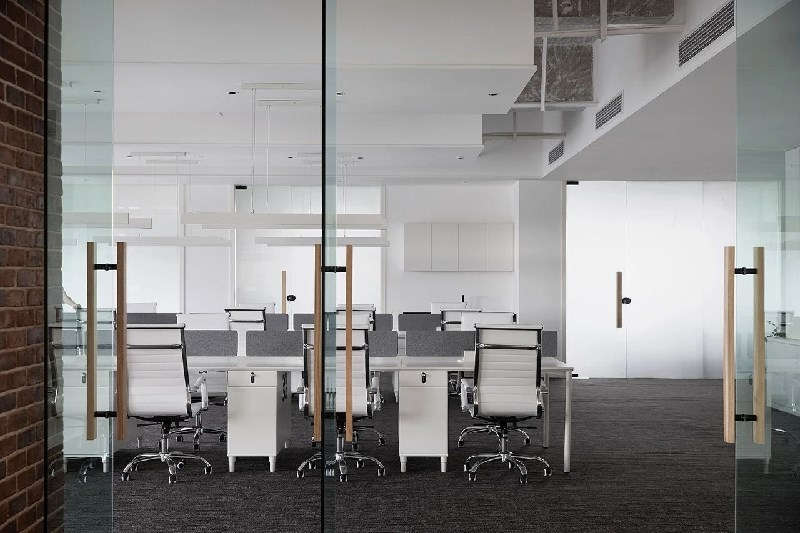 聯(lián)排落地窗滿足了最大程度的采光,玻璃隔斷更強(qiáng)化了室內(nèi)通透,營(yíng)造高潔、敞亮的良好溝通環(huán)境。其材質(zhì),不僅易打理,還能有效達(dá)到靜音功能,確保工作時(shí)的私密性。簡(jiǎn)約基底之上,加入現(xiàn)代美式的輕復(fù)古格調(diào),豐富質(zhì)感。在公區(qū)大面積鋪設(shè)地毯,能為辦公時(shí)減少更多噪音。適當(dāng)?shù)鼐G植與裝飾元素可以打破事務(wù)所固有的沉寂,從感官切入,化解一直以來(lái)人們對(duì)其產(chǎn)生的刻板影響。當(dāng)行業(yè)面臨新生血液的迭代更替,思想與審美也將在無(wú)形中完成進(jìn)階。
