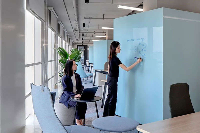 設計過程中也不乏挑戰(zhàn):如何在空間設計中顯示出Arm China 特有DNA以及未來辦公的前瞻性?一工團隊為此做了充分調(diào)研,成為智能計算生態(tài)的領(lǐng)航者,這是Arm的一個企業(yè)愿景,我們同時理解了Arm最新的VI轉(zhuǎn)型設計。設計師把此次項目當作一顆未來的種子,以點破面,將Arm的員工當作未來的種子和探索者。在空間中用動線、機理和光和設計手法引導來訪者在新的辦公空間朝向往的方向生長。