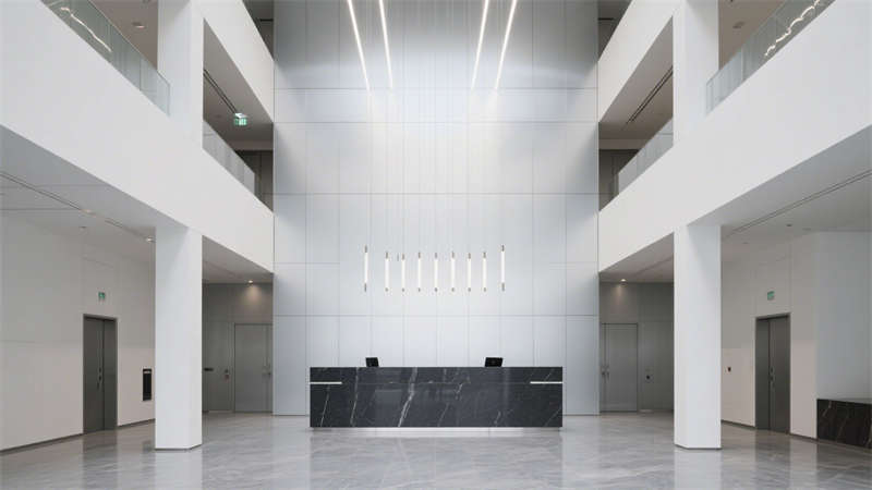 本設(shè)計圍繞現(xiàn)代簡約風(fēng)格展開,從室外到室內(nèi)形成統(tǒng)一的視覺體系。室外效果圖呈現(xiàn)出簡潔大氣的建筑外觀,線條流暢利落,色彩搭配沉穩(wěn)雅致,既符合辦公場所的專業(yè)氣質(zhì),又能在周邊環(huán)境中展現(xiàn)獨特辨識度。?