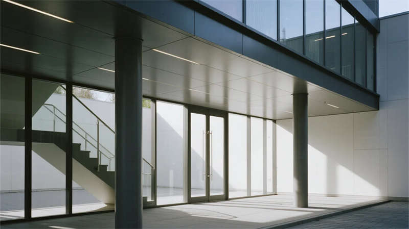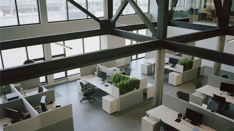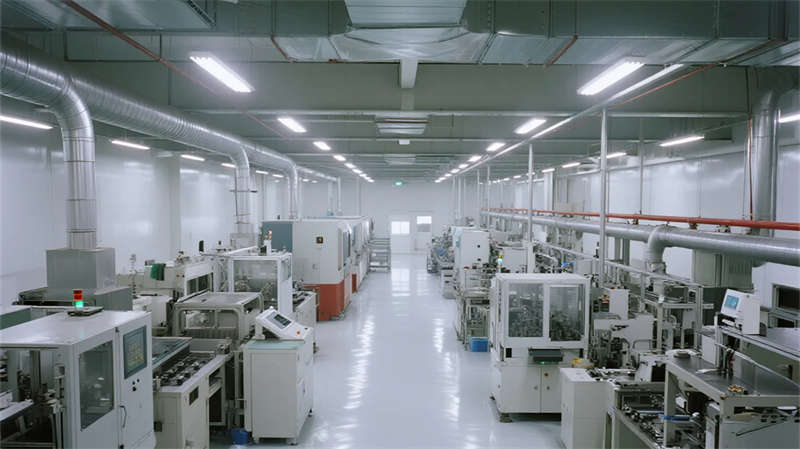 內(nèi)部空間延續(xù)"少即是多"哲學(xué):生產(chǎn)車(chē)間以銀白為主調(diào),設(shè)備管線規(guī)整排布于頂棚,環(huán)氧地坪反射線性燈光,營(yíng)造科技感十足的無(wú)塵環(huán)境;辦公區(qū)突破傳統(tǒng)隔斷,玻璃幕墻引入外部景觀,綠植墻自然劃分區(qū)域,形成通透開(kāi)放的協(xié)作場(chǎng)域。