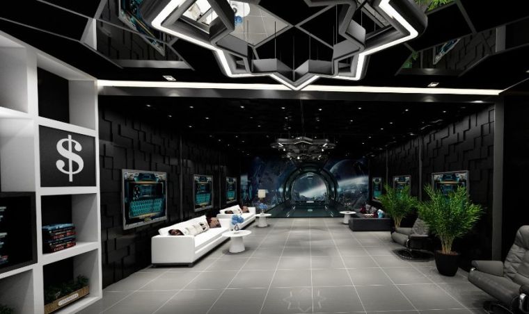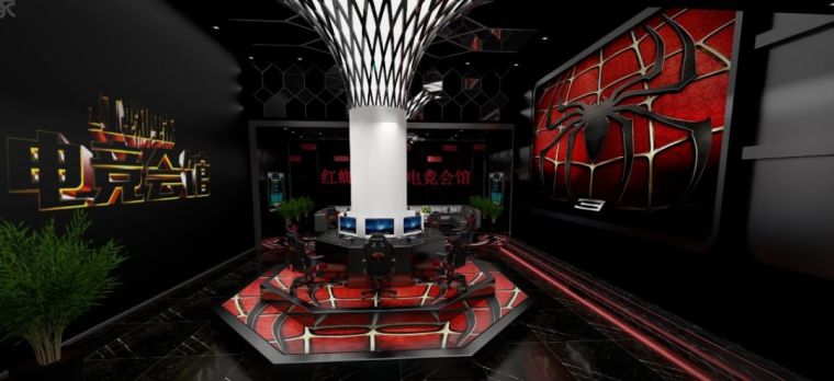 俗話說(shuō),氣氛不能輸,一個(gè)氣場(chǎng)極強(qiáng)的電競(jìng)會(huì)館絕對(duì)可以讓玩家、選手釋放個(gè)人最大戰(zhàn)斗力,分泌更多的腎上腺素進(jìn)入暴走狀態(tài)。本次案例整體設(shè)計(jì)上走的是現(xiàn)代前衛(wèi)風(fēng),以黑色為主色調(diào)猩紅色為輔,搭配空間感十足的燈光和炫酷的裝飾元素,緊緊扣合“紅蜘蛛”的品牌主題,同時(shí)非常凸顯時(shí)尚特色,符合消費(fèi)群體定位。
