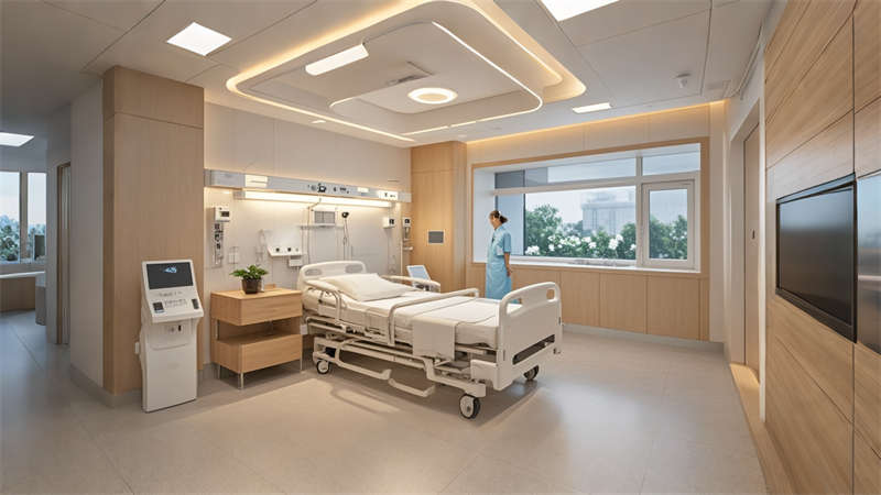本8000㎡現(xiàn)代醫(yī)院設(shè)計以 ' 療愈型智能醫(yī)療 ' 為核心理念,采用模塊化空間布局。門診區(qū)運(yùn)用淺藍(lán)灰主調(diào)配木紋元素,通過色彩心理學(xué)緩解患者焦慮;醫(yī)技區(qū)采用高反射率材料增強(qiáng)空間通透感。創(chuàng)新性整合智能導(dǎo)診、空氣質(zhì)量管理及醫(yī)療物流系統(tǒng),病房單元設(shè)置多模式照明系統(tǒng),兼顧醫(yī)療操作與患者休憩需求。環(huán)??咕牧先采w,關(guān)鍵區(qū)域配置跌倒預(yù)警地膠系統(tǒng)。屋頂療愈花園突破傳統(tǒng)醫(yī)療空間限制,形成立體綠化體系。整體設(shè)計實(shí)現(xiàn)醫(yī)療功能、人文關(guān)懷與智能科技的有機(jī)融合,打造新一代智慧醫(yī)院樣板。