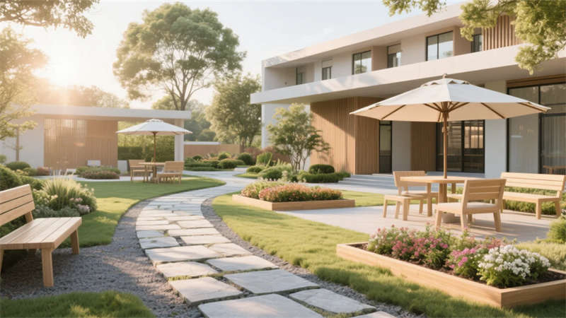 這套老年康養(yǎng)中心設(shè)計以現(xiàn)代簡約風(fēng)格為核心,營造一個溫馨、安全且充滿活力的生活空間。設(shè)計強(qiáng)調(diào)自然光與柔和色彩的融合,入口大廳以開闊布局和藝術(shù)元素傳遞家的溫暖,休息區(qū)則通過舒適沙發(fā)和綠植打造社交港灣。餐廳和活動室注重功能性,淺色調(diào)家具與靈活布局鼓勵日常互動,促進(jìn)社區(qū)歸屬感。居住單元采用圓角細(xì)節(jié)和私密氛圍,確保舒適休憩??祻?fù)訓(xùn)練區(qū)融入防滑設(shè)計和自然光,支持健康活動。戶外庭院成為心靈綠洲,石板步道與花壇提供寧靜放松。多功能廳則適應(yīng)多樣需求,增強(qiáng)空間活力。整體設(shè)計以適老化理念貫穿,避免繁雜裝飾,突出簡約美學(xué)與人性關(guān)懷,讓每位長者感受到尊重與陪伴,在簡約中體驗(yàn)生活的美好。