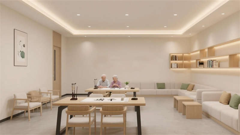 溫馨自然居所,合肥老年康養(yǎng)中心裝修設(shè)計效果圖
