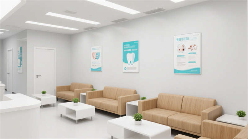 在視覺呈現(xiàn)上,以低飽和度的中性色為基礎(chǔ),搭配局部溫潤的軟裝元素,營造出專業(yè)且溫和的氛圍,緩解患者就診時(shí)的緊張情緒。材質(zhì)選擇上,優(yōu)先考慮易清潔、耐磨損的環(huán)保材料,兼顧實(shí)用性與健康需求。整體設(shè)計(jì)無冗余裝飾,以簡潔的形態(tài)承載功能,讓空間既符合口腔醫(yī)療的專業(yè)屬性,又傳遞出舒適、安心的體驗(yàn)感。