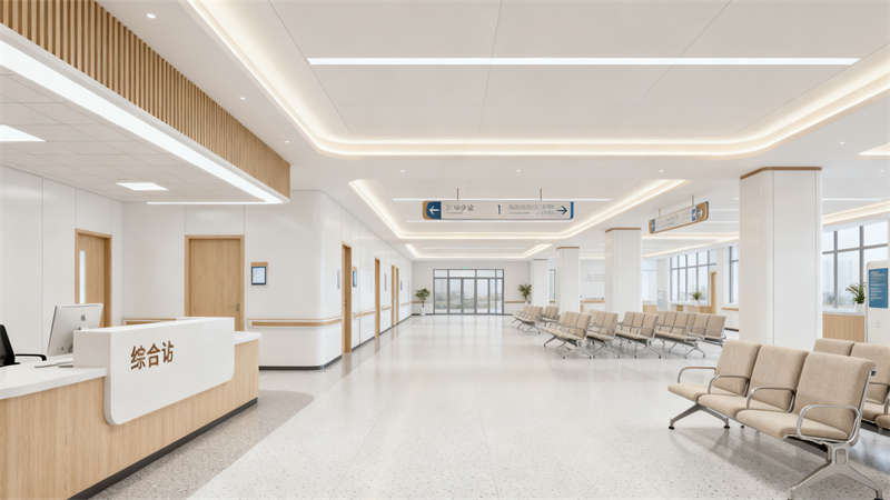 室內(nèi)空間在保持風(fēng)格統(tǒng)一的同時,兼顧不同區(qū)域的功能特性。門診區(qū)域動線清晰,布局合理,避免患者往返奔波,墻面以柔和的色調(diào)為主,搭配簡約的裝飾元素,營造清爽有序的環(huán)境;候診區(qū)融入自然元素,柔和的燈光、舒適的座椅與綠植點綴相得益彰,有效緩解患者等待時的煩躁情緒;病房空間注重私密性與舒適性,軟裝選擇以溫馨色調(diào)為主,家具擺放兼顧實用與便捷,讓患者仿佛置身“家一般”的休憩環(huán)境,助力康復(fù);診療室與護士站強調(diào)高效與便捷,合理的功能分區(qū)讓醫(yī)護工作更順暢,同時通過親切的設(shè)計細(xì)節(jié)拉近與患者的距離;康復(fù)區(qū)域與走廊設(shè)計延續(xù)溫潤風(fēng)格,避免生硬的空間劃分,通過連貫的視覺元素讓整個醫(yī)院空間形成有機整體,既方便患者活動,又讓醫(yī)護工作更高效,真正實現(xiàn)“以患者為中心”的設(shè)計初衷,讓醫(yī)療空間不僅具備診療功能,更成為助力身心康復(fù)的療愈場所。