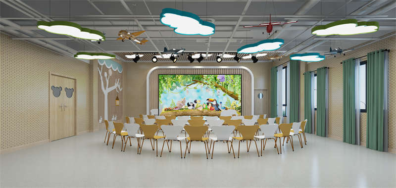 為了適應(yīng)幼兒園教學(xué)活動的眾多需求,幼兒園活動教室在設(shè)計上要站在孩子的角度,綜合考慮孩子們的生理心理需求。寬敞的空間及良好的布局能讓孩子們感覺到舒適和溫馨并進而產(chǎn)生歸屬感。各個功能區(qū)域的劃分需要合理,各種設(shè)施需有利于孩子們自己動手參與并且有利于教學(xué),材料的運用紀細節(jié)的功能提供更方便更環(huán)保更安全的學(xué)習(xí)娛樂環(huán)境。