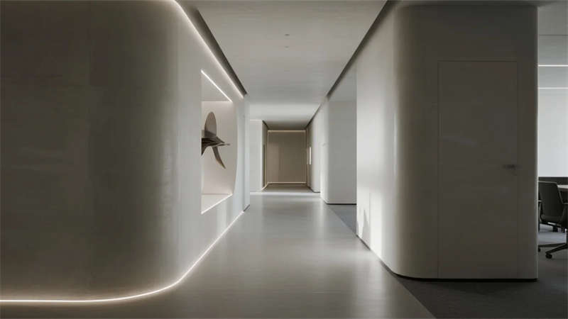 本設(shè)計(jì)以現(xiàn)代簡(jiǎn)約語言重構(gòu)辦公展示空間,摒棄冗余裝飾,用微水泥的質(zhì)樸肌理與金屬的精致光澤形成對(duì)話。線性光帶貫穿空間,勾勒出清晰的建筑輪廓,同時(shí)營造輕盈的科技感。大量留白處理賦予空間呼吸感,使產(chǎn)品展示與人文辦公自然融合。玻璃隔斷的應(yīng)用模糊了功能區(qū)域的邊界,形成通透連續(xù)的視覺體驗(yàn)。精心調(diào)配的自然光照與人工照明系統(tǒng),在不同時(shí)段呈現(xiàn)細(xì)膩的光影層次。軟裝選用低飽和度色調(diào),搭配溫潤木元素與綠植,平衡科技空間的冷靜感,最終打造出一個(gè)既體現(xiàn)專業(yè)氣質(zhì)又蘊(yùn)含人文溫度的現(xiàn)代辦公展廳。